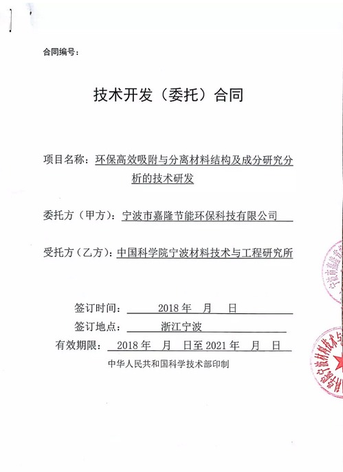 寧波市嘉隆節(jié)能環(huán)??萍加邢薰?以下簡稱“公司”)于近日與中國科學(xué)院寧波材料技術(shù)與工程研究所簽署了《環(huán)保高效吸附與分離材料結(jié)構(gòu)及成分研究分析的技術(shù)研發(fā)》。合同簽署后公司與中科院進(jìn)行了深入的溝通,啟動了相關(guān)項(xiàng)目的科研工作,現(xiàn)將合作環(huán)保高效吸附與分離材料結(jié)構(gòu)及成分研究分析的技術(shù)研發(fā)項(xiàng)目的相關(guān)事宜公告如下: